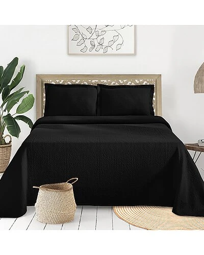 - Design details: create a comfy cozy retreat with the jacquard matelasse medallion bedspread set. the oversized, raised textured of the monochromatic medallion pattern is crafted from 100-percent cotton and is woven into a matelasse pattern on a jacquard loom. this bedspread can be used as an added layer to your current bedding ensemble or warm enough to use on its own. for a finished look, this set comes with two matching pillow shams for an eye-catching look.