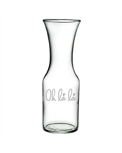 - Glass carafe with a sand-etched design