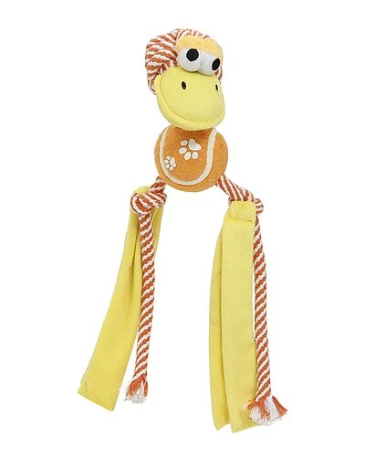- Design details: the pet life ‘tennis pawl’ rope squeaker and crinkle tennis dog toy features a built-in felt tennis ball connected to jute rope legs and neck with crinkle paper drapings and a plush head that squeaks on when chewed. this unique dog toy is designed to tap into their sense and create an exceptional play time experience. this dog toy is great for tugging and engaging their touching and hearing senses. the tennis pawl is further safe and composed of non-toxic materials. available in 3 fun characteristic head shapes to choose from. available in multiple colors. ; ; sizing dimensions: (inches) l x w x h; 13.39 x 3.94 x 3.94