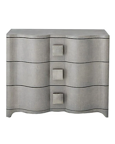 - Design details: Wrapped by hand in fine Belgian linen then given a multi-layered grey-toned glaze, this collection features oak-lined drawers and custom hardware with antique nickel finish. A technique that fell out of favor for many years, fabric-wrapping furniture is an exacting art we have revived with the help of one of the industry’s leading manufacturers of fine accent furniture.