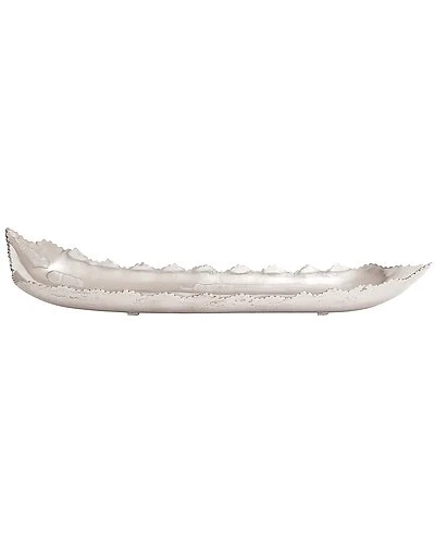 - A contemporary style offers neutral elements and basic forms with a bold design. This decorative tray is crafted with solid metal material. This decorative tray highlights a metallic silver overall finish. This silver decorative tray features a lace-inspired ribbed edges to give it that elegant look. Each item measures 36″L x 10″W x 6″H; and weights 8 lbs