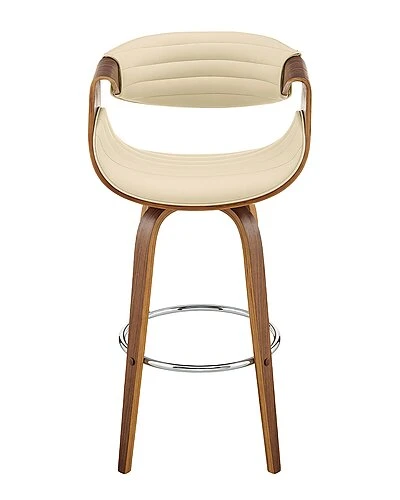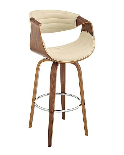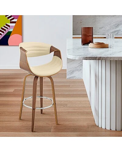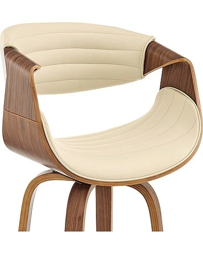- The Arya 30in Bar Height Bar Stool in Cream Faux Leather and Walnut Wood from Armen Living will reveal the chic and artistic side of your personality right in your home. The design of the Arya is fun and unique – detailing clean fabric lines and a novel shape that make this piece so special. The Arya features a 360-degree swivel function that allows you to keep the conversation going in any direction! The Arya is also crafted with a ring footrest – meaning you can relax your feet regardless of the direction you decide to turn! The Arya is available in your color choice of Gray or cream faux leather with walnut wood or Gray faux leather with black wood, also available in 26 counter height and 30 bar height. Product Dimensions: W:20 x D:20 x H:41 x SH:30